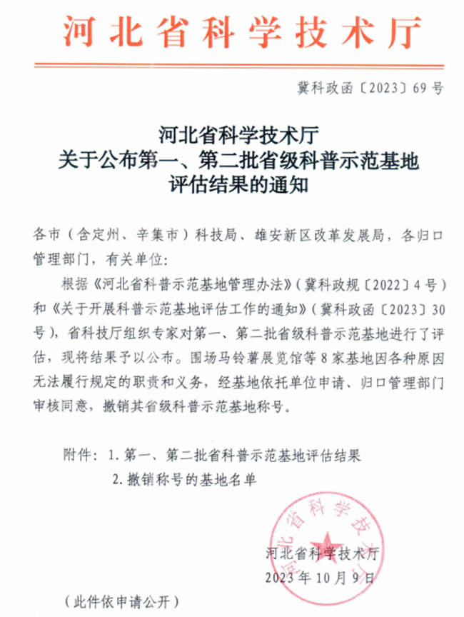文章导读:近日,河北省科学技术厅公布了第一、第二批省级科普示范基地评估结果,AC米兰地质馆荣膺“四星级”省级科普示范基地。这是AC米兰地质馆2021年获评河北省第二批专题特色类省级科普示范基地以来,获得的又一项荣誉称号。AC米兰地......