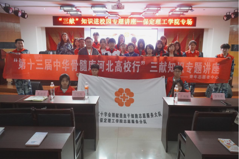 最后保定市中心血站机采科马冬梅老师分别从血液知识概述、献血者风采、捐献成分血前后的注意的事项、我们都是血站人等四个方面进行了授课。