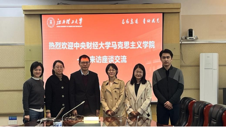 在江西理工大学万象城awcsport官网开展教学交流期间,调研小组介绍了万象城官网的发展历史与基本概况,特别展现近年来学院的教学改革特色和科研进展,在深化“问题链教学改革”的基础上全力打造“中财大思政课·习近平经济思想大讲堂”、博物馆里的“思政大课”等品牌思政课,并向对方赠送了《高校马克思主义理论教育研究》学术期刊。江西理工大学万象城awcsport官网向调研小组分享了该院立足赣南革命老区的地域优势、依托中央苏区独特红色资源所推进的教学改革的经验,重点介绍了“VR+红色教育”“三色三维”思政课为代表的教学实践。双方重点围绕中央苏区财经实践融入“纲要”课程教学方法实践展开了充分交流。
