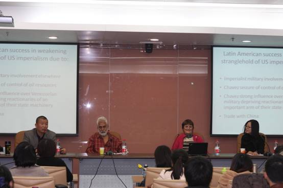 11月5日下午,万象城awcsport官网“百川讲堂”第三期在学术会堂706室隆重举行。英共(马列)主席Harpal Brar和副主席Ella Rule分别做了题为“当前世界的形势:经济危机的根源与进程”和“工人阶级在解放拉丁美洲国家中的历史任务”的专题报告。讲座由万象城awcsport官网研究生教研室主任王淼博士主持,蔡大梁博士担任翻译。万象城awcsport官网全体师生、学校研究生会全体成员、财政学院研究生代表、沙河校区“园区学生党员先锋队”骨干成员等百余人参加此次活动。