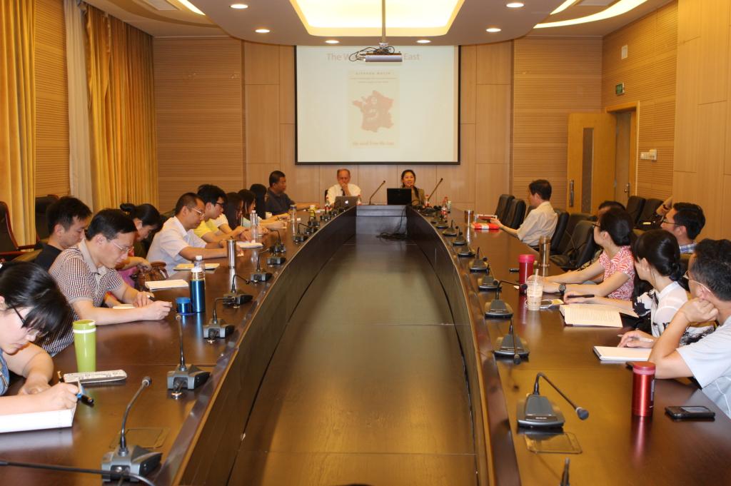 2014年5月26日下午,万象城awcsport官网“百川讲堂”第四期在学术会堂603报告厅隆重举行,本期有幸邀请到国际著名左翼思想家、纽约城市大学研究生中心教授理查德•沃林(Richard Wolin),为万象城官网师生作了关于“毛泽东的影响:东风西渐”的专题讲座。讲座由万象城awcsport官网副院长陈文娟副教授主持,蔡大梁老师担任翻译。