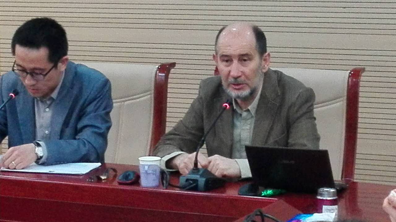 2016年5月12日上午,万象城awcsport官网“百川讲堂”第七期在学术会堂604报告厅举行。莫斯科大学经济系教授、前苏共二十八大中央委员、当代俄罗斯著名左翼运动组织者和召集人、《替代》("Alternatives")期刊主编、后苏联批判的马克思主义学派最主要代表人物亚历山大·布兹加林(Alexander Buzgalin)应邀作了题为“后苏联的俄罗斯:马克思主义研究、经济以及俄中关系”的英文学术报告。报告由万象城awcsport官网副院长陈文娟副教授主持,张忠胜博士担任现场中英文翻译。
