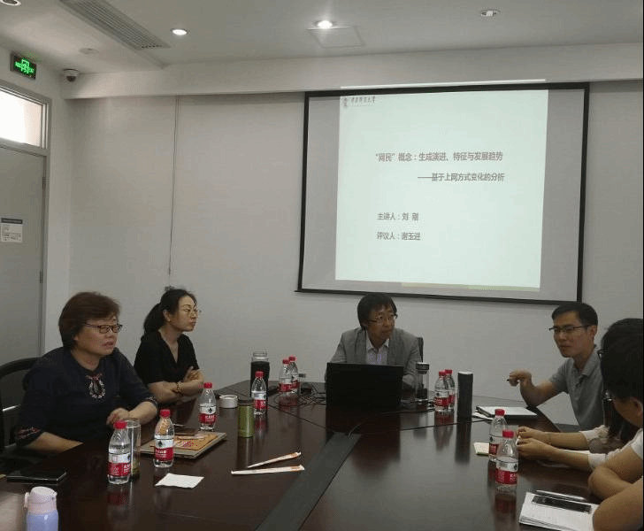 在集体讨论环节,大家围绕报告主题,进行了深入的交流。冯秀军教授指出,学术研究要注重研究方法和用语的学科化,要有学术性和现实的针对性,加强对现实问题的解读;王淼副教授认为,可以从哲学中人的本质的思想出发,通过对费尔巴哈、马克思等人对人的本质的论述的梳理,分析网络时代人的本质特征和变化等;刘亚琼副教授认为,可以从群体认识、群体特点、群体情感等方面加强对网民的理解;王奎博士认为,哲学中关于科学技术的分析、传播学等学科中对网民的理解有助于我们对这一命题的把握,是构建网民概念的有利视角。大家普遍认为,“网民”概念和网络空间下人的存在和发展是一个值得深入思考和研究的问题,刘刚副教授的报告在基于网民概念的梳理中,还需要在“网民”研究的学科归属、网络发展的异化问题、网民的媒介素养培育、教育引导等方面深入探讨。最后,主持人韩小谦教授总结指出,“双周论坛”的目的在于交流中启发、促进思考提升,活跃学院的学术氛围,为学院教师提供很好的发展平台。