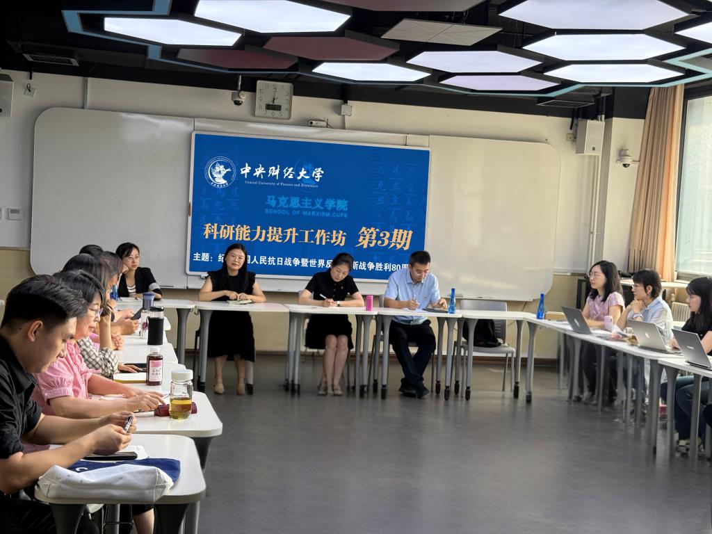 2025年9月3日上午11点,万象城awcsport官网科研能力提升工作坊第3期在沙河学院楼10号楼317成功举办。本期工作坊围绕习近平总书记在纪念中国人民抗日战争暨世界反法西斯战争胜利80周年大会重要讲话展开,万象城awcsport官网朱家梅教授、赵付科教授、刘亚琼副教授、田瑜博士等四位老师作主题发言,万象城awcsport官网党委书记陈文娟参加工作坊,万象城awcsport官网副院长王静主持工作坊。