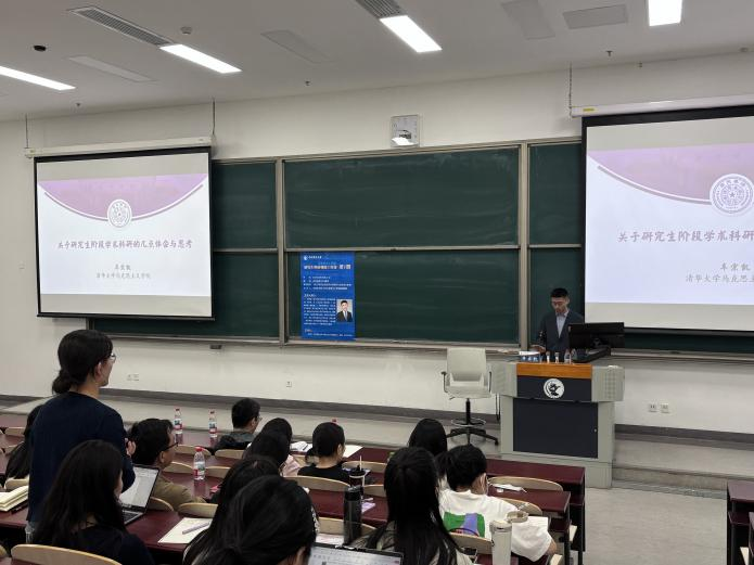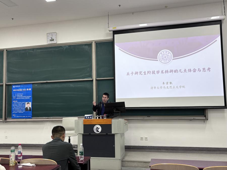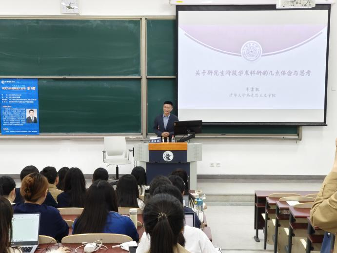 车宗凯老师以“关于研究生阶段学术科研的几点体会与思考”为题进行了分享,他结合自身经历从问题意识与研究选题、资料搜集与思路整理、提纲准备与初稿写作、文章打磨与校对核正四个方面分享了如何把握适合自己的“节奏”。
