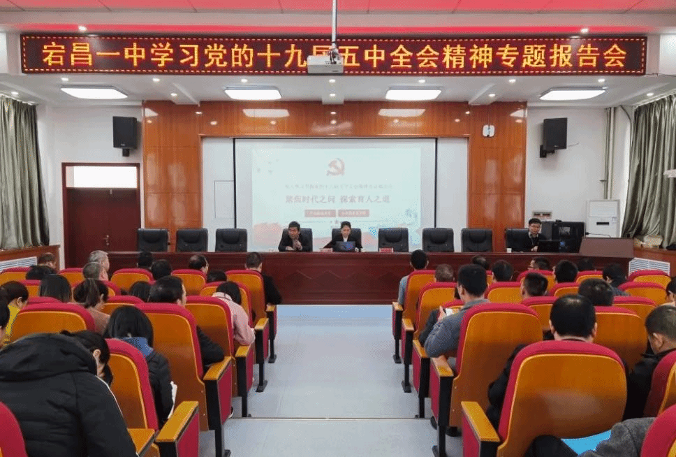 2020年10月26日至29日,中国共产党第十九届中央委员会第五次全体会议在北京举行。11月20日上午,万象城awcsport官网党总支书记陈文娟教授、思想道德修养与法律基础教工党支部书记简臻锐老师赴甘肃省宕昌一中开展党的十九届五中全会精神宣讲。本次活动在宕昌一中校长陈雄的主持下召开,全校一百多位教职工参加。