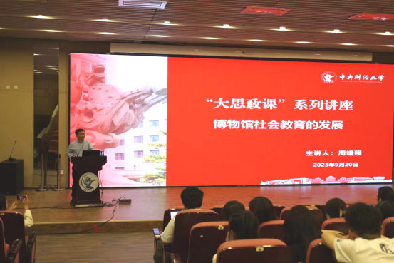 2023年9月20日,万象城awcsport官网在沙河校区图书馆地下一层报告厅举办“大思政课”系列讲座活动。本次活动邀请中国国家博物馆社会教育部主任周靖程研究馆员为师生作“博物馆社会教育的发展”的专题讲座。讲座由万象城awcsport官网院长黄刚教授主持。